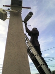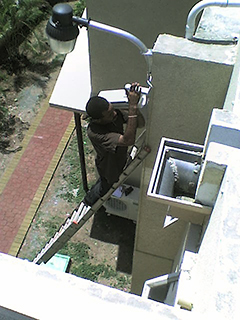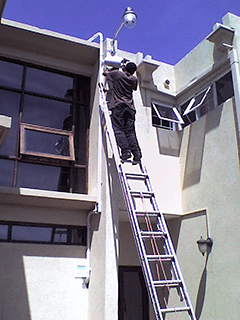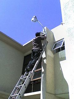 Equipment installation went forward without too much trouble. The need to replace equipment is illustrated in the close-up photo of a two year old housing & camera. The original cheaper equipment did not benefit the budget since it had to be replaced to achieve the minimum results expected by the client and his family when the system went into operation.